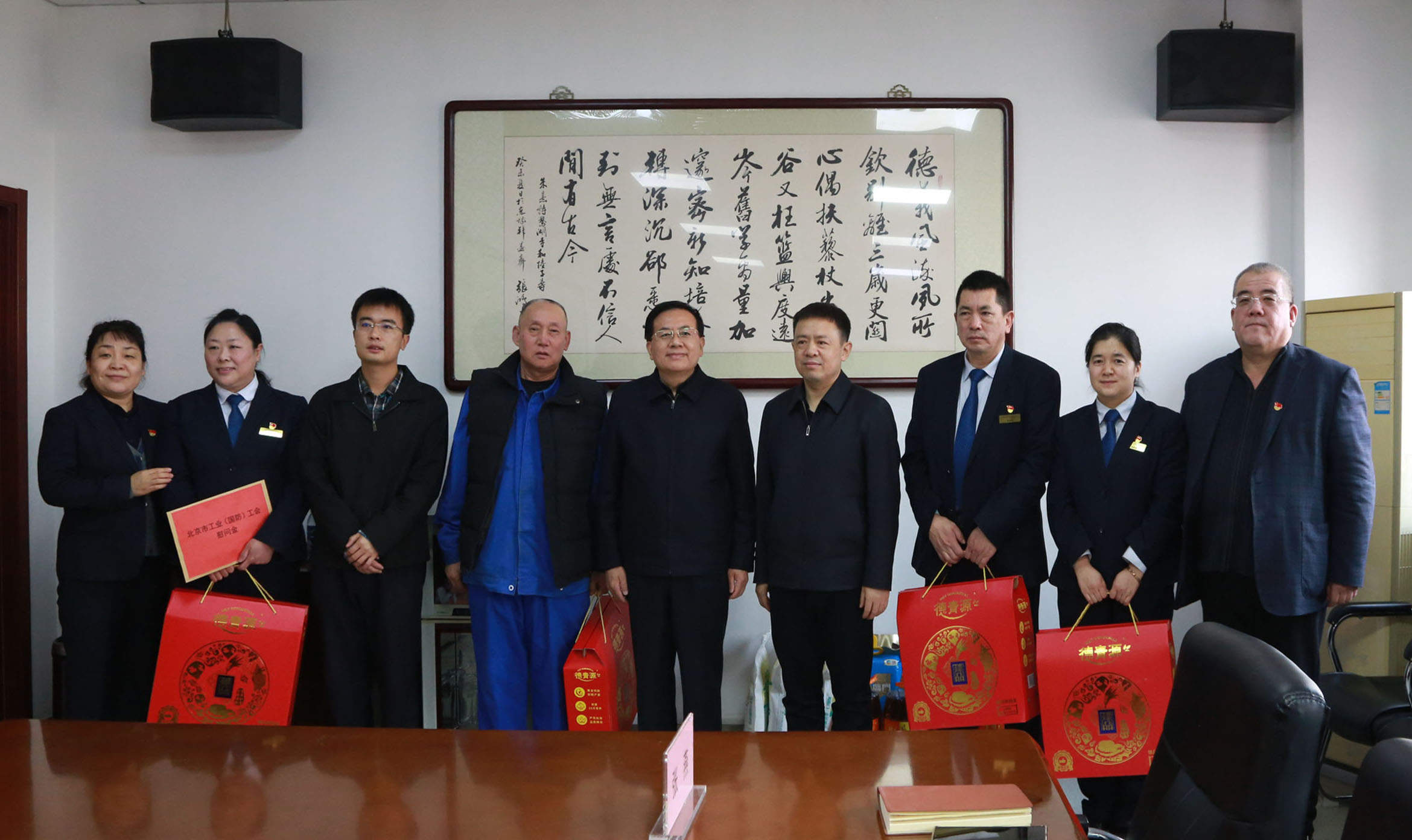1月19日,北京市總工會工業(yè)(國防)工會主席周玉忠一行來到玻璃集團紅橋文創(chuàng)園走訪慰問勞動模范集體、一線職工,帶來市總工業(yè)(國防)工會的關懷和問候,送上節(jié)日的祝福。一輕控股公司黨委常委、紀委書記袁新民陪同慰問。