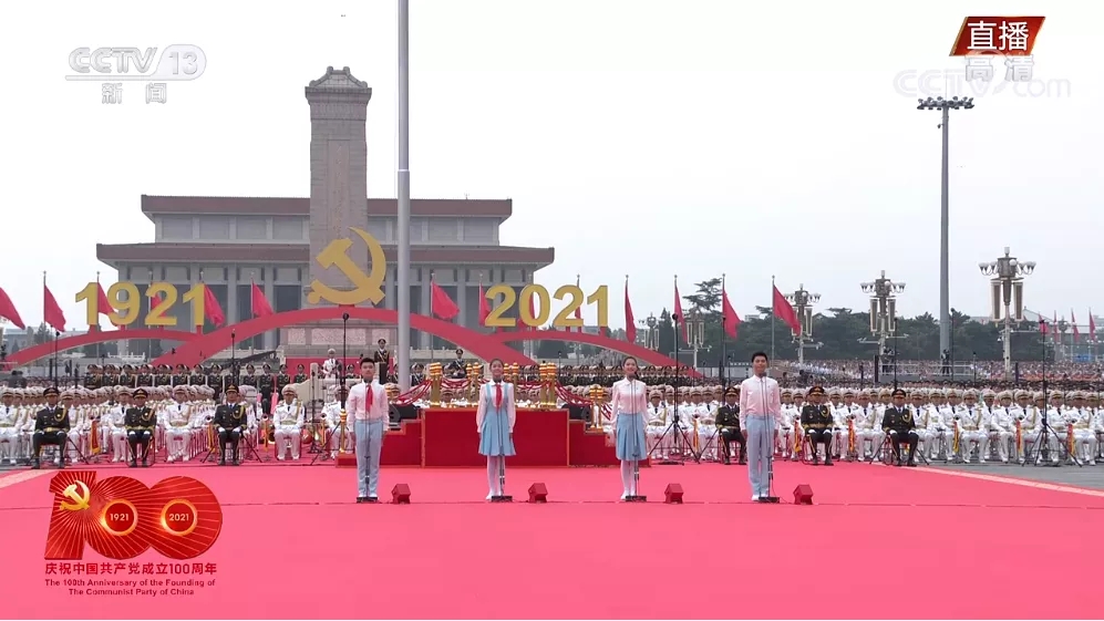 7月1日,慶祝中國(guó)共產(chǎn)黨成立100周年大會(huì)上,共青團(tuán)員和少先隊(duì)員代表們集體致獻(xiàn)詞,他們的獻(xiàn)詞里濃縮了中國(guó)共產(chǎn)黨的百年歷史,他們重新喊出了30年前的團(tuán)結(jié)起來(lái),振興中華。